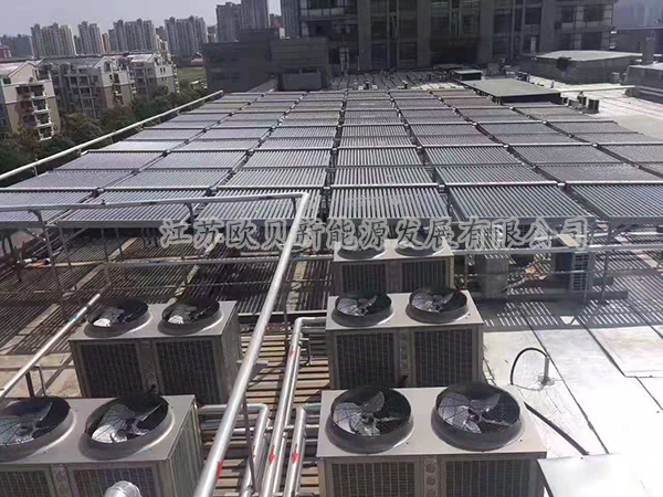 應用客戶:廣東珠海某中石油公司選用產品::1120平方真空管太陽能集熱器+18臺高溫空氣能熱泵(可帶PLC遠程監控功能,滿足遠程和就地操作)