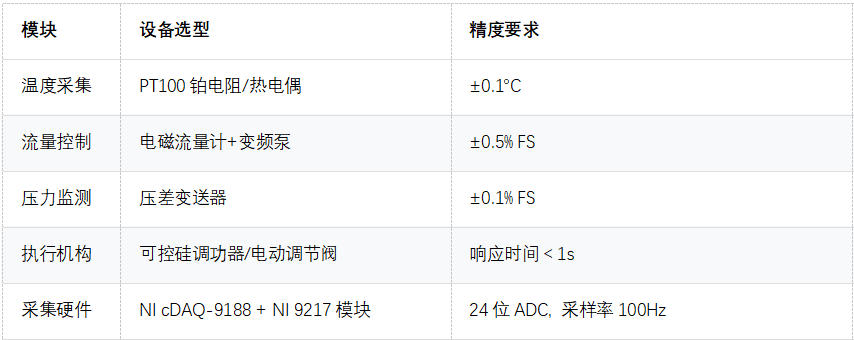 實現(xiàn)溫度±0.1℃、流量±0.5%的工業(yè)級測量精度,30秒完成單工況測試(傳統(tǒng)手動方案需10分鐘)。