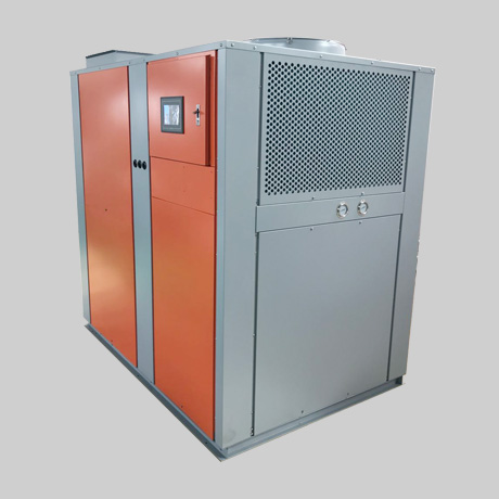 熱泵機組超低溫空調(diào)蒸發(fā)器消化吸收烘干房外氣體的發(fā)熱量并遷移到烘干房內(nèi),將烘干房內(nèi)氣體加溫提溫,暖空氣循環(huán)系統(tǒng)流過物料,揮發(fā)物料中的水份,濕度大的暖空氣經(jīng)過祛濕離心風(fēng)機排出來烘干房外,最后完成物料的持續(xù)干躁。
