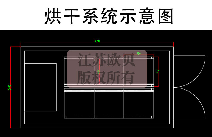 1)烘房尺寸:3850*2050*2550 mm,保溫厚度100mm雙面彩鋼巖棉板5面保溫房。