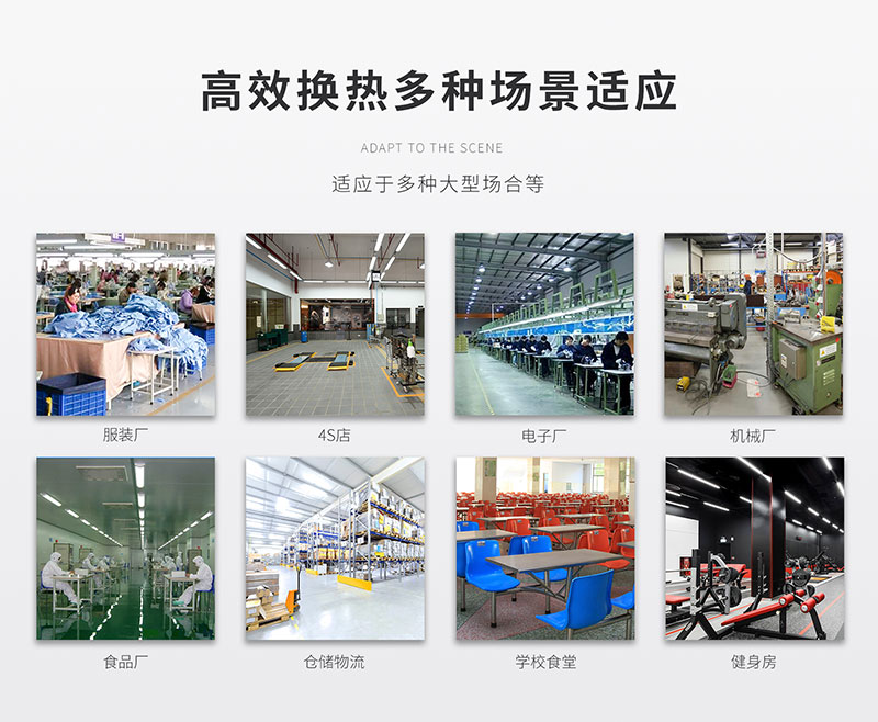 工業場所:紡織、服裝、印染、制革、襪業、塑料加工、化工、電子、印刷、包裝、機電、機械、五金、食品等工廠有高溫熱源的場所。
