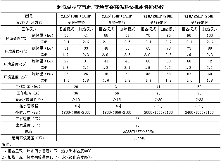 -35℃強勁高熱;雙級壓縮,兩種制冷劑同步運行,輕松實現(xiàn) 90-95度高溫熱水。