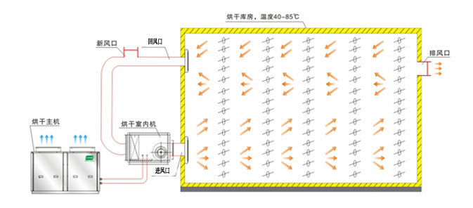* 熱泵干燥設備進行物品烘焙,機組解決了因燃燒而產生的廢氣污染。