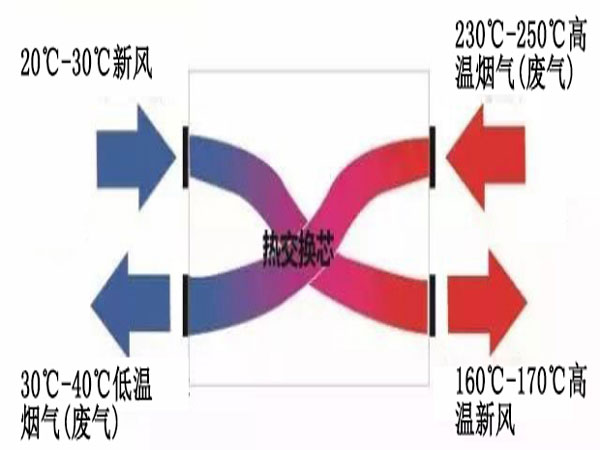 廢氣余熱回收器,是用于能量回收的一種回收裝置。兩股逆向流動的氣流,通過超薄傳熱板片隔絕,由于存在溫度差而產生熱量交換,從而實現能量回收。